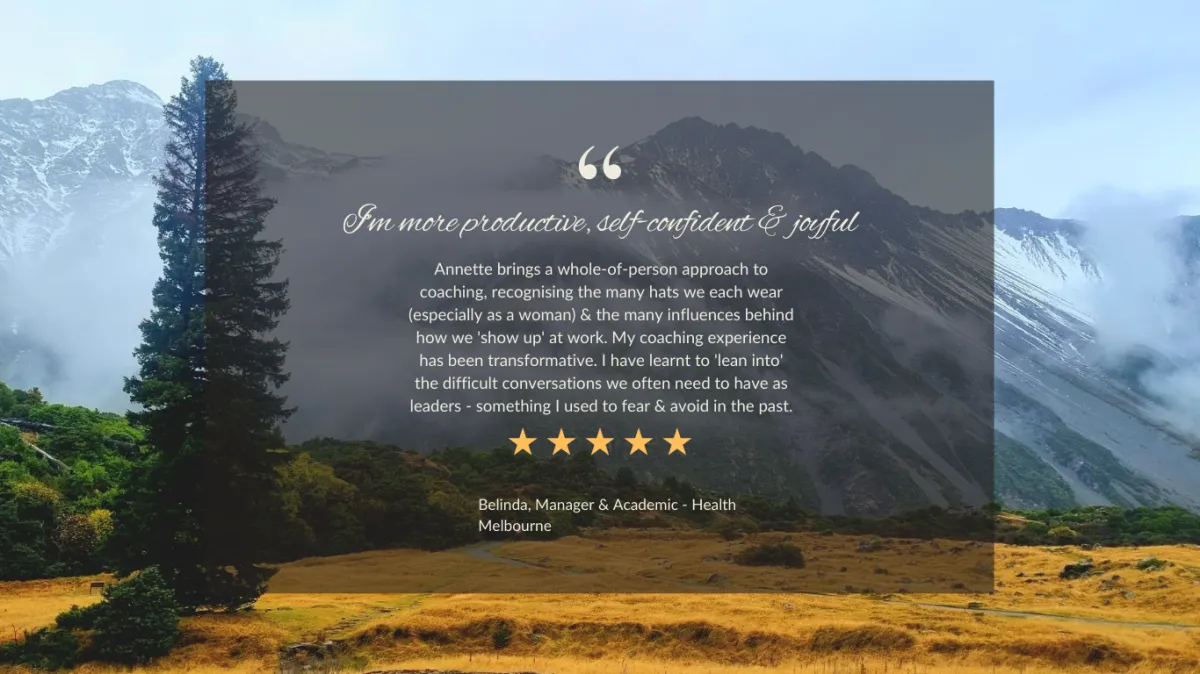 Annette gave me the space and perspective to begin redefining what success looks like in a way that aligns more closely with who I am and what I value. It now looks different from what I once imagined and that’s not only okay, it’s freeing.